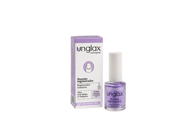 Laboratorios Viñas sale al rescate con Unglax Booster Regenerador, un Sérum SOS que trata las uñas dañadas y sensibilizadas. Recomendado para uñas muy débiles y castigadas, especialmente por los esmaltes agresivos o de mala calidad y por la exposición a agentes externos agresivos. Formulado con taurina, que endurece y mejora la calidad de la uña, Vitaminas C y E micro encapsuladas, antioxidantes que combaten el envejecimiento y los radicales libres, glicerina y pantenol, que hidratan las uñas. Resultados probados: En una semana uñas más hidratadas en un 90% y más sanas en un 85%. Tras dos semanas, la calidad de la uña mejora en un 90% y le proporciona un mayor crecimiento en un 75%.