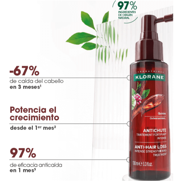 El Tratamiento Anticaída fortalecedor intensivo a la Quinina medicinal es un sérum sin aclarado indicado para todos los tipos de caída del cabello, que a la vez lo protege frente a los efectos nocivos del estrés. Adecuada para todos los tipos de caída del cabello y apta durante el embarazo, la lactancia y después de la quimioterapia.