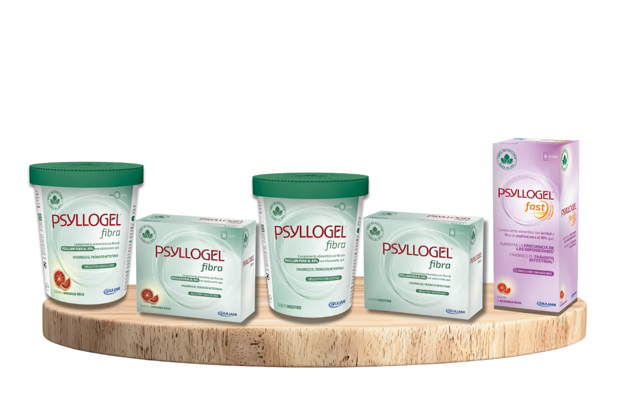Para los casos en los que el incremento del consumo de fibra no soluciona el problema, Giuliani ha desarrollado Psyllogel Fast, un innovador complemento alimenticio. A la fibra de psyllium pura al 99%, presente en toda la gama de productos, se añaden 10 g de lactitol, lo que aumenta la frecuencia de las deposiciones.