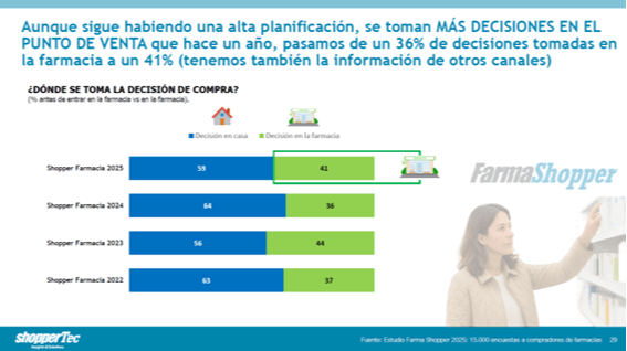Los estudios de shopper, como Farma Shopper, desarrollado por Shoppertec, permiten identificar las palancas más eficaces para activar la compra. Las marcas deben utilizar esta información para alinear su propuesta de valor con las expectativas reales del comprador y del farmacéutico, construyendo estrategias de Trade más eficientes y con mayor retorno.