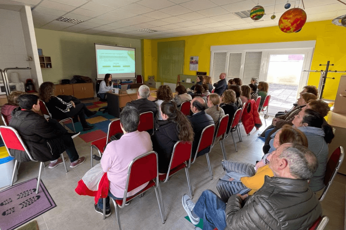 En una segunda fase de la campaña fue cuando los farmacéuticos comenzaron a impartir sesiones formativas a pacientes y cuidadores, dando lugar a las Escuelas Rurales de Salud Mental.