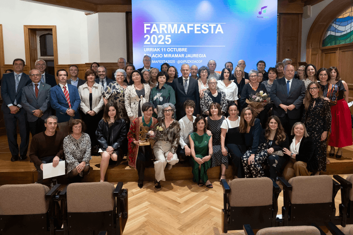 El reconocimiento tuvo lugar en la Farmafesta 2025 que congregó a 300 personas en el Palacio Miramar de San Sebastián. Durante el evento se dio asimismo la bienvenida a los nuevos colegiados/as y se entregaron los premios y becas CreditCOFG que reconocen el trabajo de los colegiados que, a lo largo del año, han destacado por su actividad profesional, formativa o científica, entre otras áreas. Además, se entregó un reconocimiento especial a Maripi Agirretxe, en reconocimiento a sus 45 años de trayectoria profesional en el COFG.