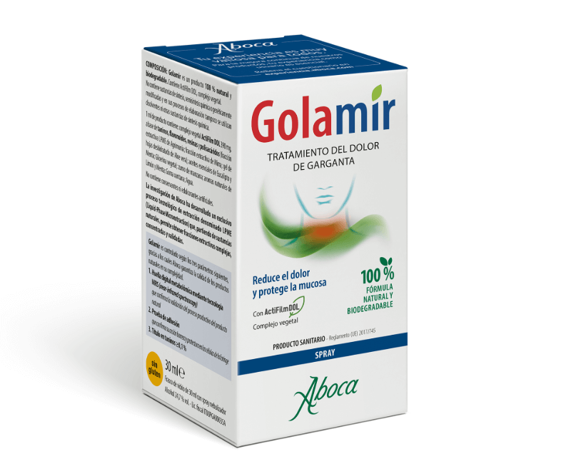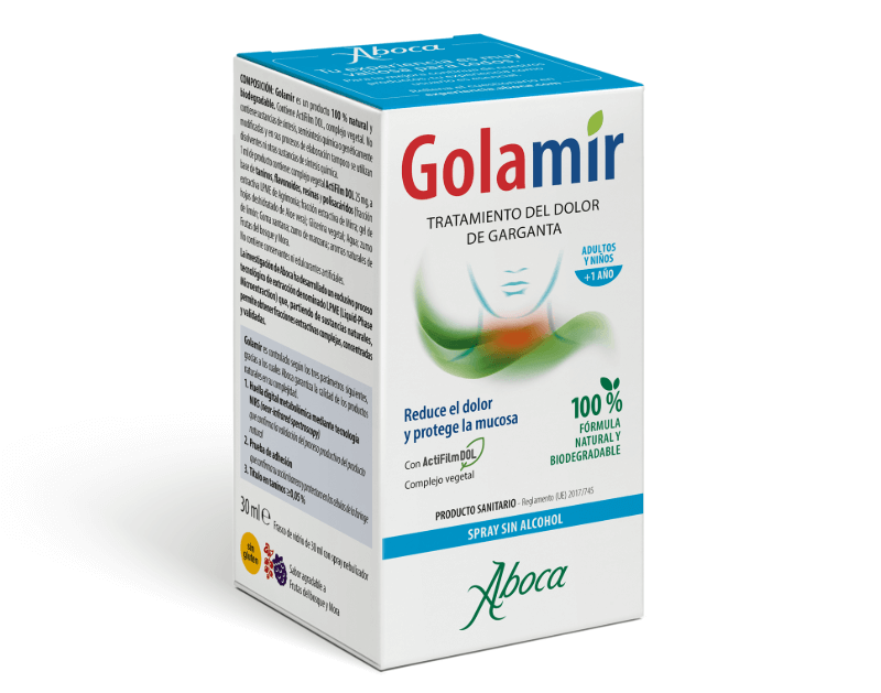 Los productos sanitarios de la gama Golamir alivian el dolor de forma fisiológica actuando sobre el dolor, el ardor y la dificultad de deglución, protegiendo la mucosa bucofaríngea de los factores que desencadenan la irritación, como virus, bacterias o alergenos. Son adecuados en resfriados cuando las secreciones nasales bajan a la garganta y pueden provocar irritación