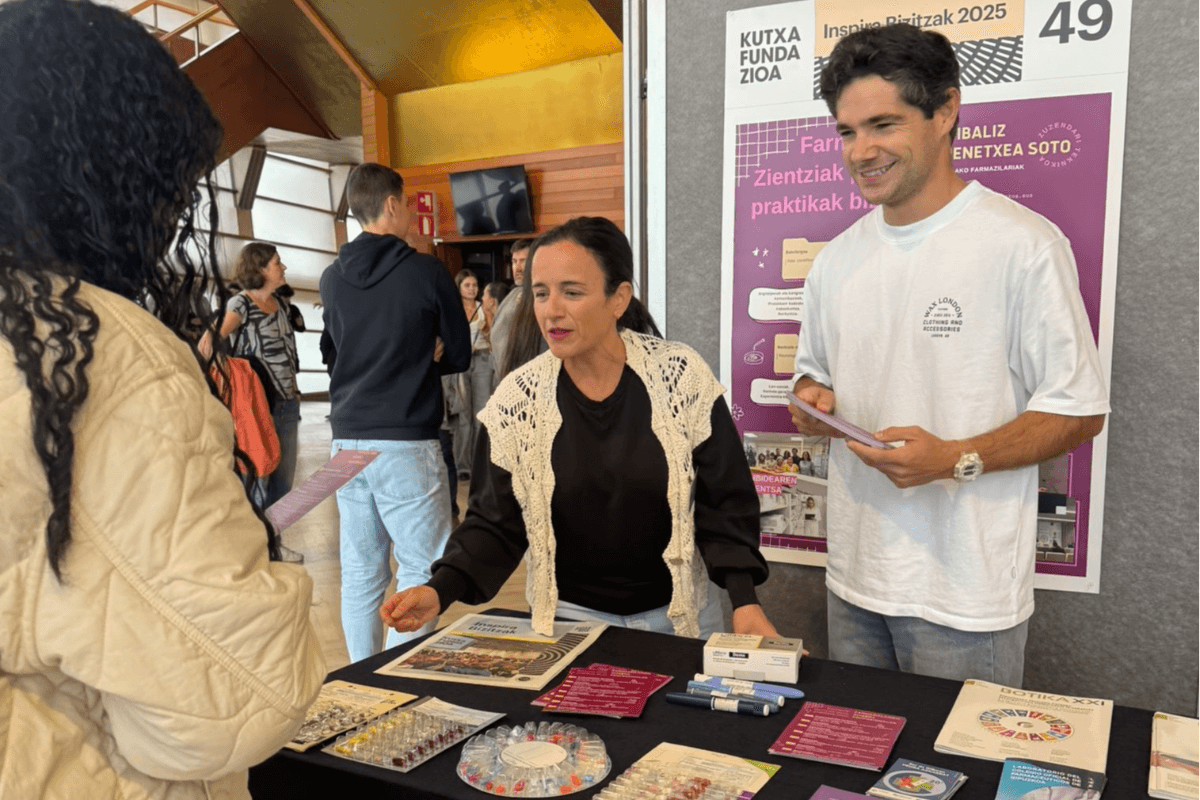 Durante la cita, el alumnado ha conocido la completa base que los estudios de Farmacia aportan en áreas como: química, biología, farmacología, tecnología farmacéutica o atención farmacéutica. "Esta base te permite entender el medicamento en todas sus etapas: desde su desarrollo hasta su aplicación clínica, pasando por la investigación, la fabricación y la dispensación. Es una formación exigente, pero también muy enriquecedora", subraya Estibaliz Goienetxea.