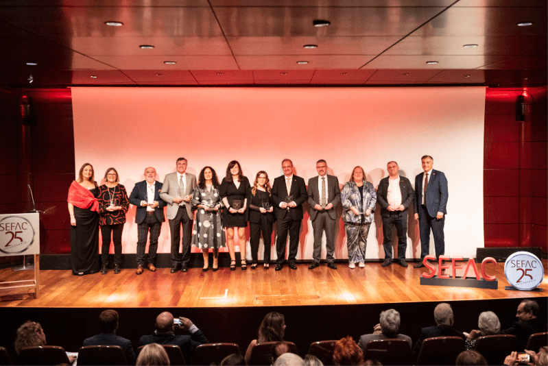 Se aprovechó la ocasión para dar agradecimientos. A Rosa Prats, vocal de la Junta directiva entre 2020 y 2024, recogió el de todos aquellos compañeros que han formado parte de las diferentes Juntas Directivas de SEFAC en su representación. Luis Pereira, director comercial de IM Farmacias; el de los medios de comunicación. Bartolomé Domínguez del Río, presidente de SEFAC Canarias entre 2016 y2020; el de presidentes de las delegaciones de SEFAC que han compuesto los Consejos de Gobierno de la sociedad. Molinero, el de colaboradores. Inés Mera, coordinadora del grupo de trabajo de diabetes de SEFAC; el de los Grupos de Trabajo de SEFAC. Alicia Martínez, responsable del Departamento de Proyectos; el del staff de SEFAC. Rafael Micó, vicepresidente de SEMERGEN; el de las sociedades científicas médicas. Andoni Lorenzo, presidente del Foro Español de Pacientes; el de las asociaciones de pacientes. Marta Galipienzo, vicepresidenta del Consejo General de Colegios Oficiales de Farmacéuticos; el de los COF de España. Luis Brizuela, por todos y cada uno de los socios de SEFAC. Cada reconocimiento entregado en este aniversario simbolizó la confianza, el esfuerzo y la colaboración que han recibido a lo largo de estos 25 años.