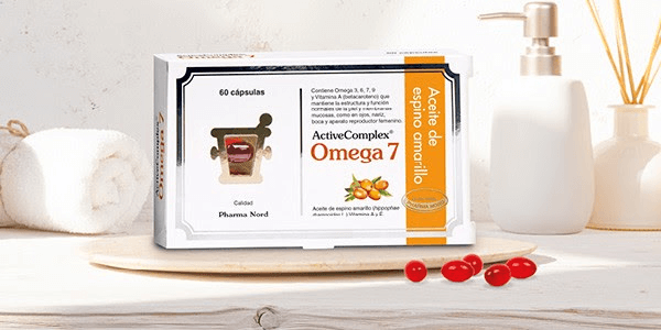 ActiveComplex Omega 7 es un complemento alimenticio con una fórmula única con extracto de SBA24, obtenido del aceite de bayas y semillas de espino amarillo, que contiene omega-7 (entre otros ácidos grasos) y vitamina A. Una de las propiedades de la vitamina A es su capacidad para mantener la hidratación de las mucosas, algo muy importante para las mujeres.